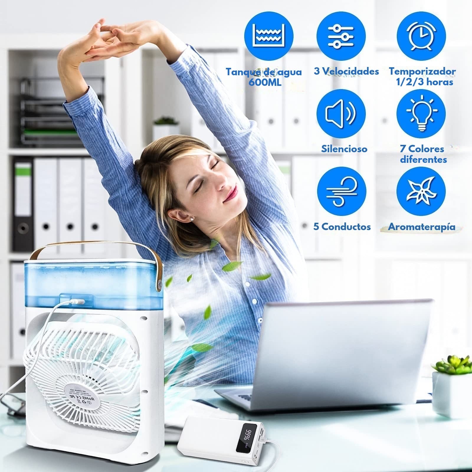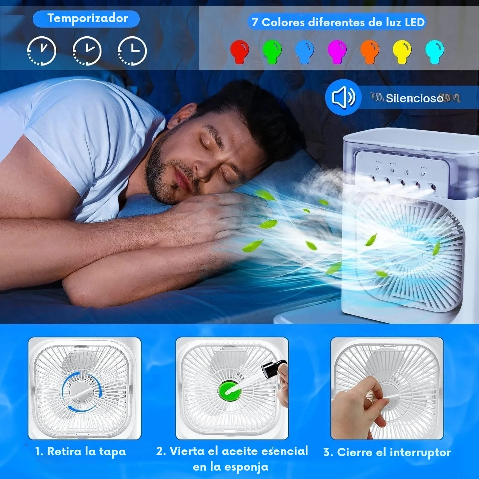 IceBreezy™ 4 en 1 es tu aliado este verano: enfría, humidifica, ilumina y purifica. ¡Llévalo contigo donde quieras!