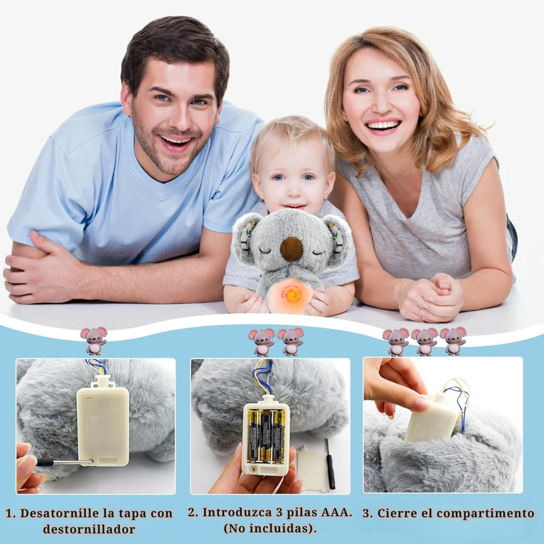 Simplemente presiona suavemente la barriguita de Ohana Koalu para activar su respiración relajante y funciones calmantes.